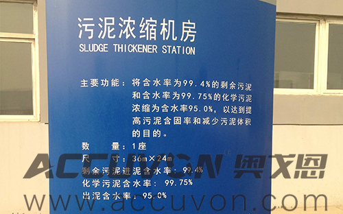 污泥濃縮處理工藝:奧戈恩凸輪泵將污泥輸給污泥濃縮機,污泥濃縮機的主要構(gòu)造是在一固定的圓柱形楔形濾網(wǎng)內(nèi)安裝有提升螺桿,螺桿的轉(zhuǎn)速可變頻調(diào)節(jié);通過重力重用,污泥通過濾網(wǎng)縫隙進行泥水分離,同時將截留在濾網(wǎng)上的固體物質(zhì)經(jīng)過提升螺桿緩慢提升并增稠(3-7%)送向排泥口排出;可通過調(diào)節(jié)螺桿轉(zhuǎn)速來調(diào)節(jié)排出污泥的含水率。